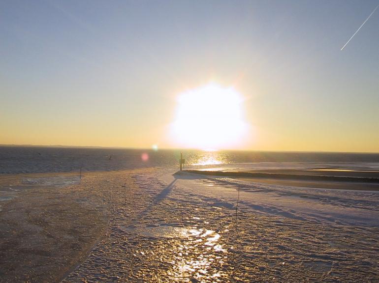 Um den Buhnenkopf herum geht es aus der Hafenmole hinaus, auf das unvereiste, »offene« (Watten)Meer.