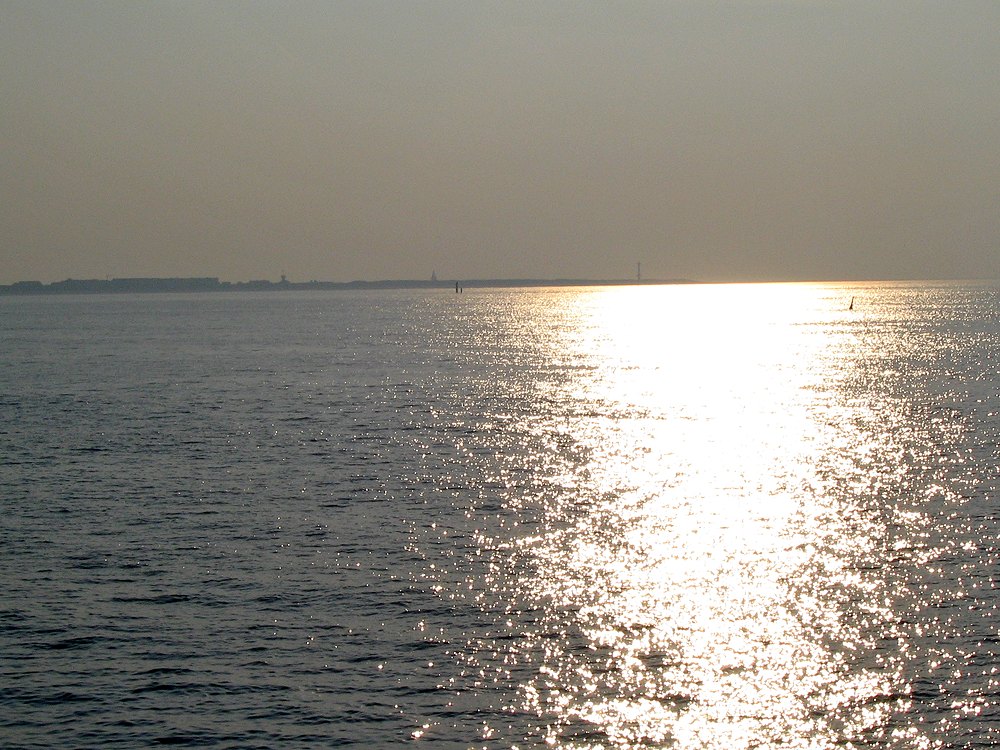 Hier sehen wir noch einige weitere Wangerooger Landmarken, genauer gesagt von rechts nach links den Neuen Leuchtturm, den Westturm und die Signalstation der Marine. Bei den beiden »Pfählen« etwas weiter vorne handelt es sich im Übrigen um den scharz-gelben Pegel, den man auch vom Wangerooger Hauptstrand aus gut erkennen kann sowie der dazugehörige Pfahl, der den Schiffen zum Anlegen dient.
