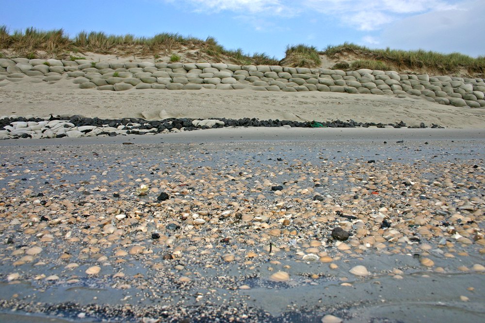 Die arg lädierten »Harle Hörn«-Dünen werden seit einigen Jahren notdürftig durch ein Sandsackdeckwerk geschützt. Das Strandniveau hat zwar noch etwas abgenommen, aber insgesamt hatte diese Maßnahme Erfolg.