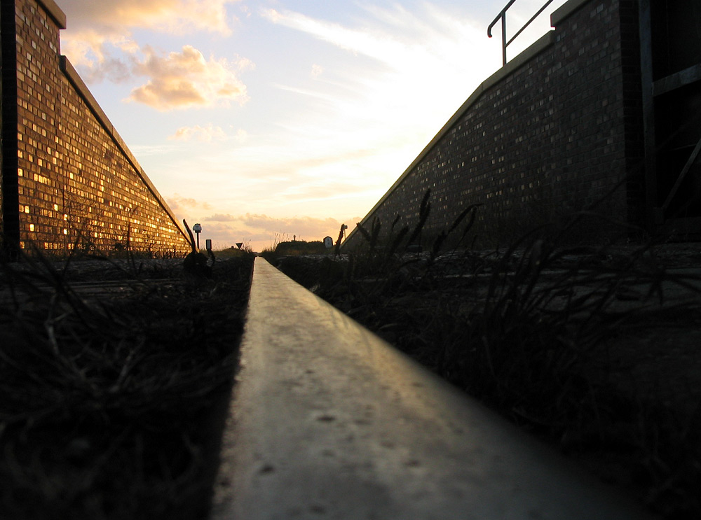 Ein eiserner Schienenstrang zieht sich vom Inseldorf bis zum Westanleger. Hier eine Ansicht des Deichscharts südlich der »Straße zum Wattenmeer«.