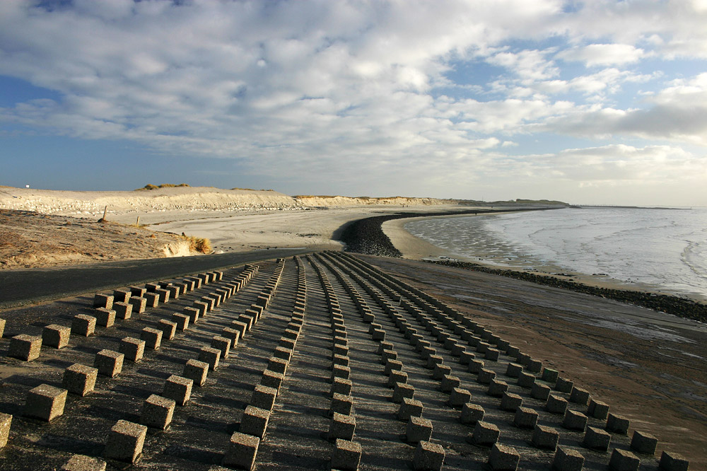 Das »Südwestdeckwerk« ist zu Ende, ab hier schützt ein Steinwall die »Harle Hörn«-Dünen. Dieser Wall war zum Zeitpunkt der Aufnahme noch nagelneu. Ob er sich bewährt, wird sich zeigen.
