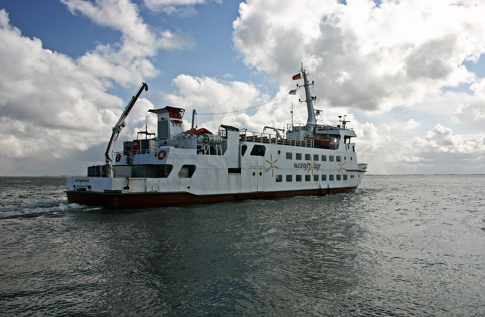 Alles Gepäck ist verladen, die Fahrt zum (ost-)friesischen Festland, genauer gesagt nach Harlesiel, geht los. Harlesiel selbst gehört zu Ostfriesland, während die Hafenanlagen zur Gemeinde Wangerland gehören, daher das »ost-« in Klammern.