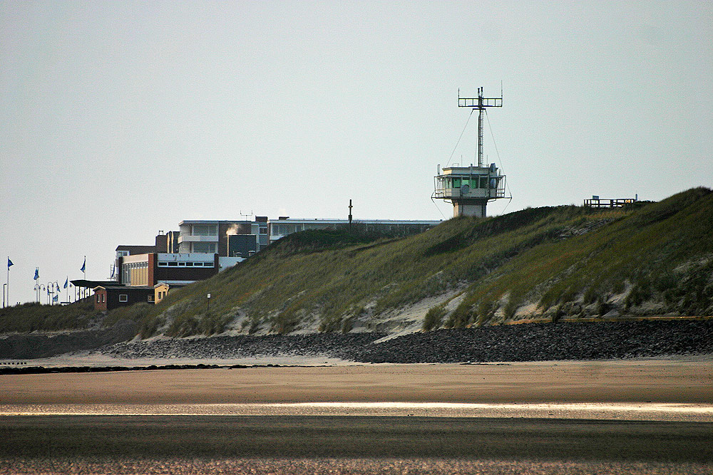 Bei größeren Entfernungen und Teleobjektiv schwinden automatisch die Abstände: So sind das »Marina« und das »Monopol« recht weit vom Kurmittelhaus und Surfkiosk entfernt, doch das alles wirkt so, als wäre es ganz nah beisammen. In der Mitte ist das Kreuz vom »Hartmannstand« und ganz rechts ist die Aussichtsdüne beim »Bielefelder Heim« zu sehen.