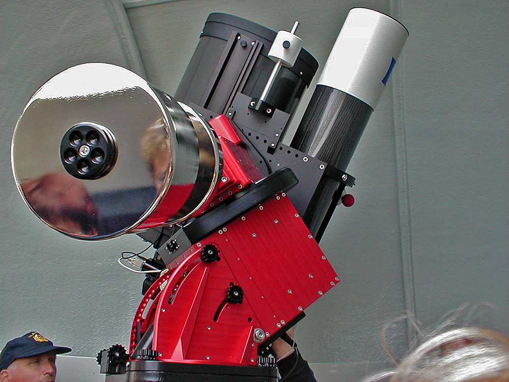 Wir befinden uns in der Kuppel der Sternwarte und sehen ein modernes Teleskop der Firma Zeiss, genauer gesagt das »Carl Zeiss Refraktor APQ 150/1200«.