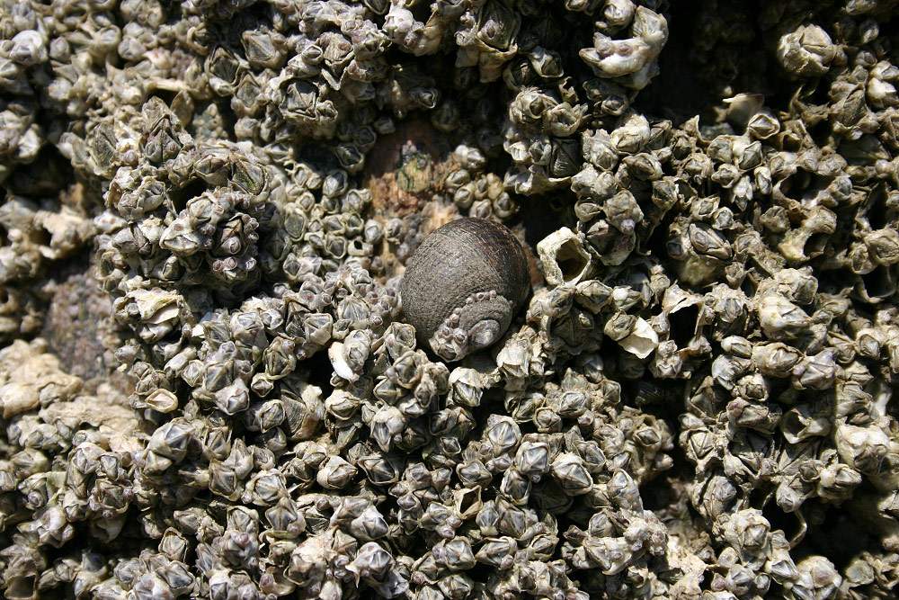 Überall an der See, wo sich nur irgendwie die Möglichkeit bietet, siedeln sich Seepocken (Balanidae) an. Hier am Pfahl einer Pfahlbuhne finden die Rankenfüßer natürlich beste Bedingungen vor.