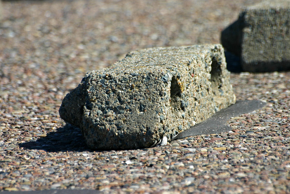 Mithilfe dieser befestigen Betonsteine werden bei Sturmfluten die auflaufenden Wellen gebrochen. Zwar überfluten sie das Längswerk noch immer, aber wenigstens ein wenig Kraft wird ihnen entzogen.