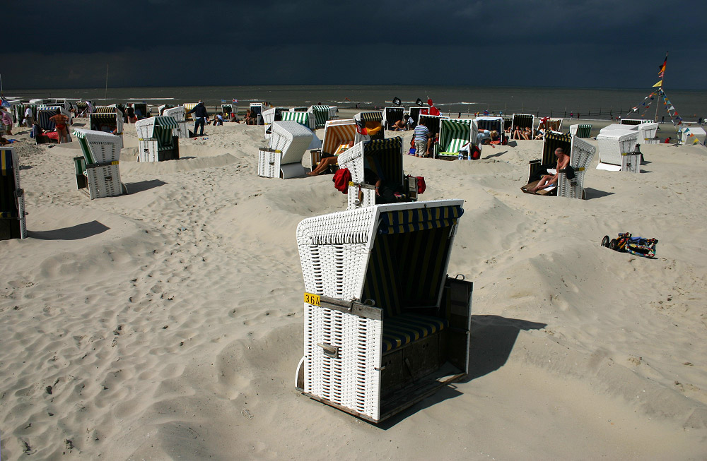 Hier sehen wir die Westfeld-Sektoren »No« (Nordlicht) bzw. »Mo E« (Monopol Ende) – die Strandwärter vermerken zu jedem Strandkorb seinen genauen Standort mit für Außenstehende kryptischen Abkürzungen, damit sie ihn später noch wieder finden.