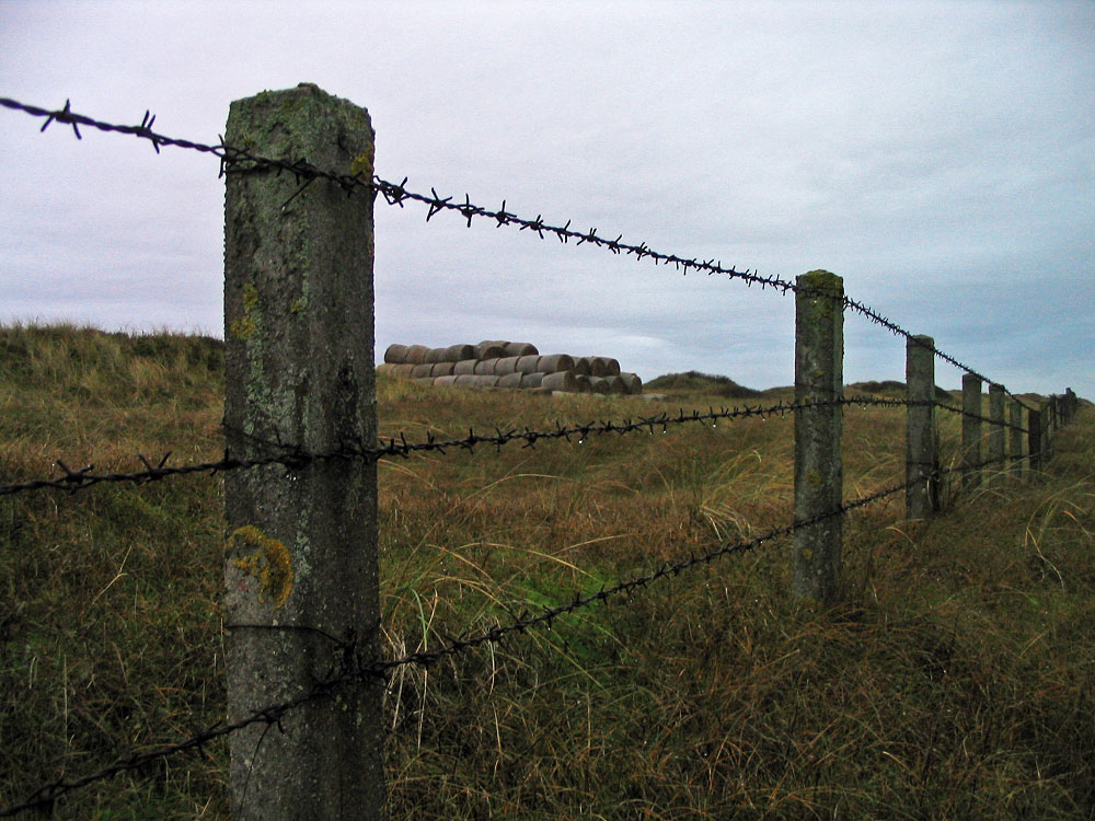 Hinter diesem Stacheldrahtzaun befindet sich die ehemalige »Radarstation« – ein Gelände, das vor und im II. Weltkrieg genutzt wurde. Heute hingegen nur noch zur Heuballen-Ablage.