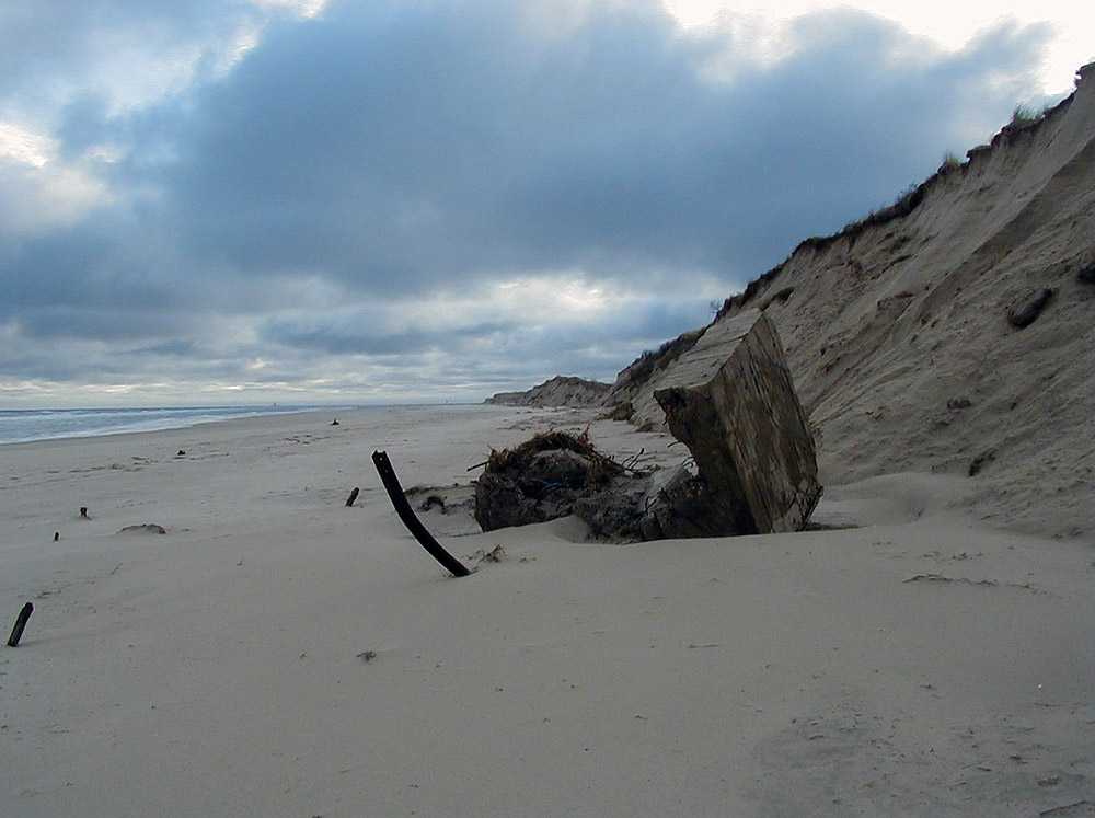 Bei der letzten Sturmflut wurde ein ganzes Stück der Düne abgetragen. Noch vor einer Woche hätte man hier kräftig buddeln müssen, um an genau demselben Punkt stehen zu können.