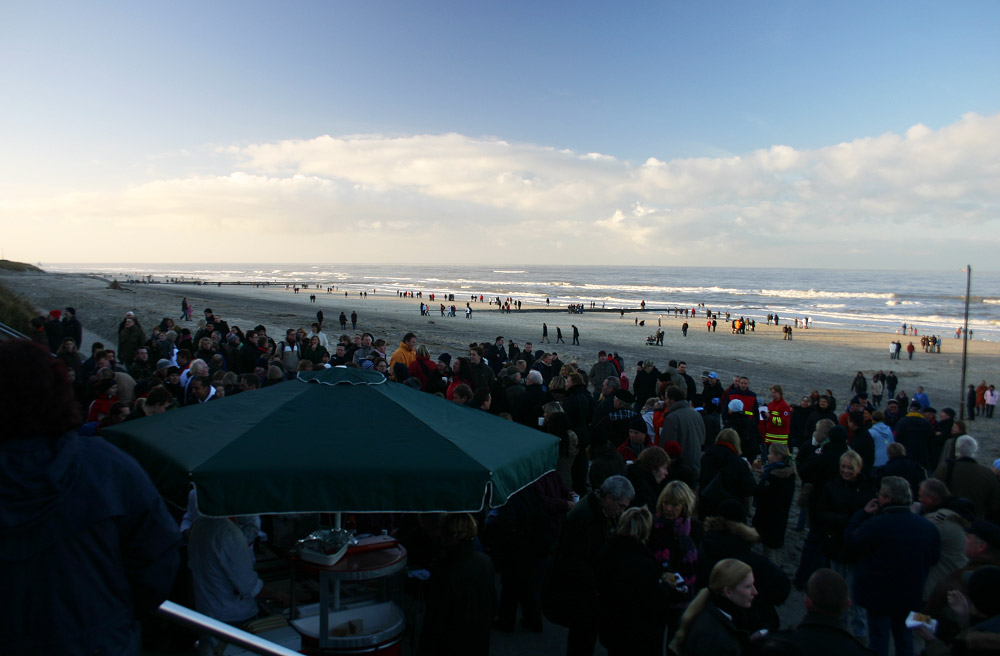 Was ein paar Jahre zuvor mehr oder weniger eine Privatveranstaltung für einige wenige DLRG-Schwimmer war, hat sich mittlerweile zum Massenevent entwickelt: Das Jahresabbaden am Silvestertag. Hier ist es allerdings bereits beendet.