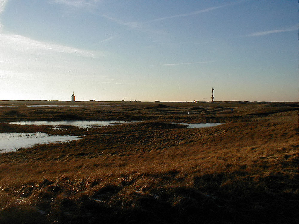 Die beiden Türme im Westen – den Westturm und den Neuen Leuchtturm – kann man vom Dünendeich aus sehr gut sehen.