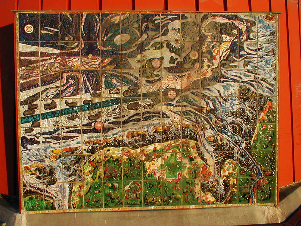 Eine von Küstlerhand geschaffene Bildwand in Keramik-Einbrenntechnik am Fuße des Neuen Leuchtturms stellt Lage und Wirken des Neuen Leuchtturms im Zusammenspiel mit den übrigen wichtigen Feuern der Deutschen Bucht zur Bezeichnung der Schiffswege dar.