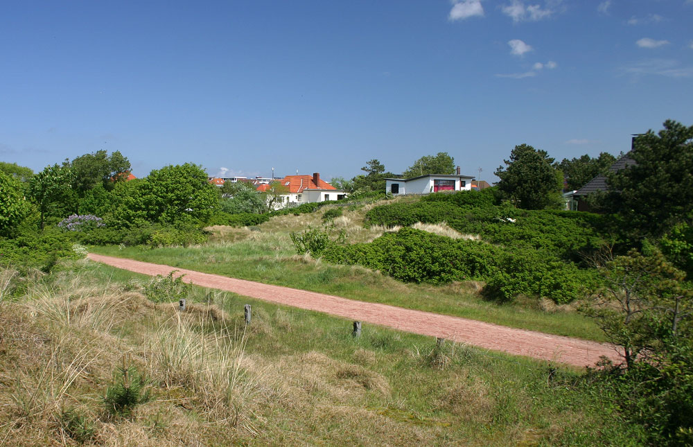 Westlich des Inseldorfes haben wir eine richtige alte Dünenlandschaft. Das weiße Haus geradeaus steht auf dem sogenannten »Hexenberg«, wobei das Wort »Berg« schon leicht übertrieben ist.