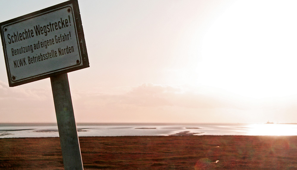 Sooo schlecht, wie es uns das Schild auf dem Dorfgrodendeich weismachen möchte, ist der Deichkronenweg nun auch nicht. Aber sicher ist sicher, also schön aufpassen!