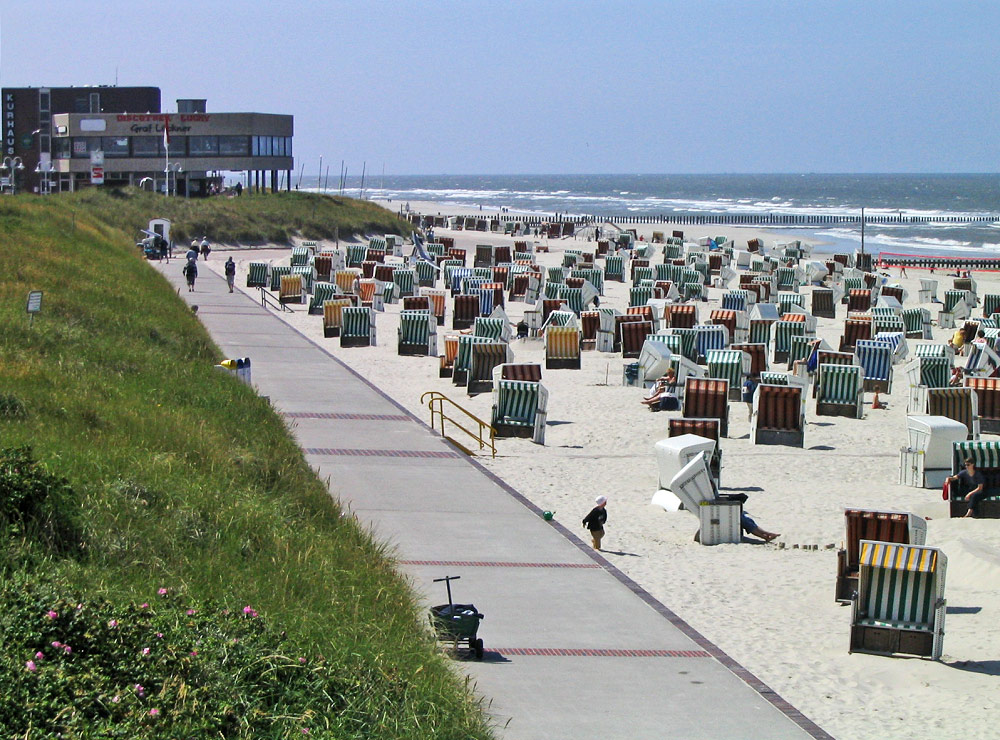 Während man von der Uhr aus in Richtung Osten auf das Mittelfeld blickt, sehen wir im Westen das Westfeld – wie könnte es anders sein. Damals stand auch das Kurhaus noch dort, wo sich heute der »Platz am Meer« befindet.