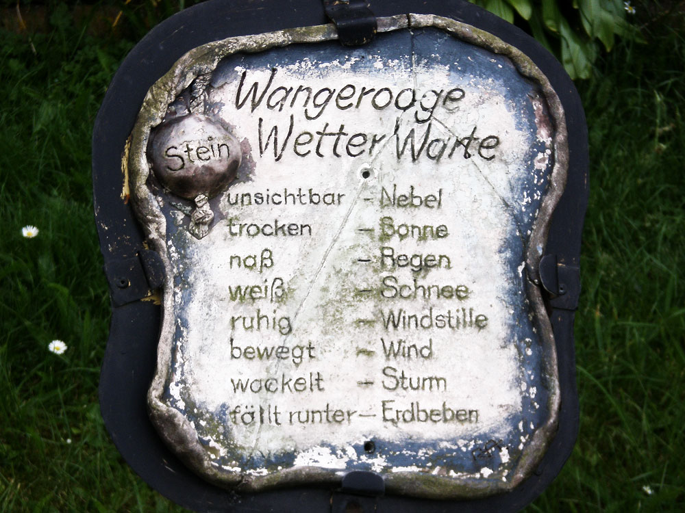 So sieht eine original Wangerooger Wetterwarte aus – oder besser gesagt die Beschreibung dazu, der am Seil hängende Stein ist leider nicht mit im Bild.