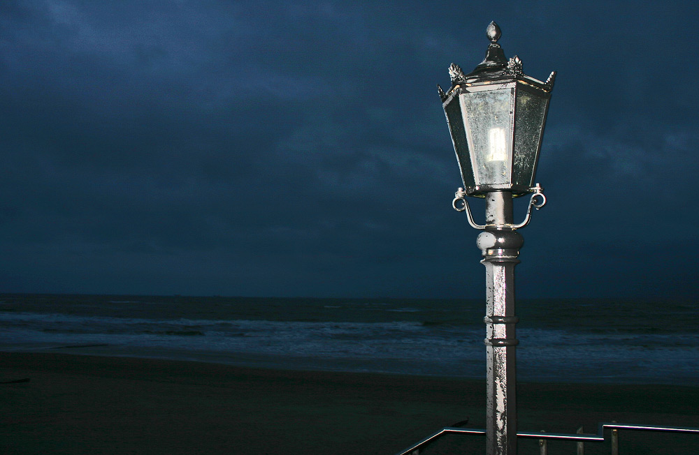 An der Uhrtreppe nördlich des »Puddings« befinden sich zwei dieser hübsch anzuschauenden Laternen. So langsam bricht auch schon wieder die Nacht über die Insel herein.