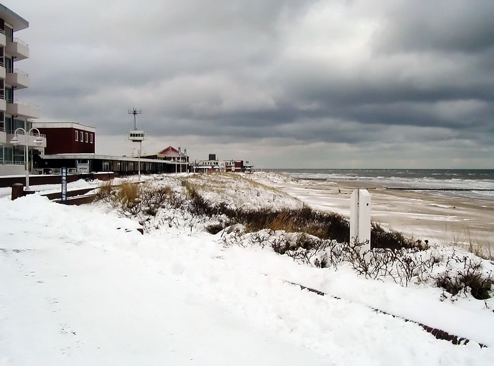 Die westliche Strandpromenade versinkt im Schnee. An Silvester wird hier abends mit vielen, vielen Leuten das alte Jahr verabschiedet und das neue eingeläutet.
