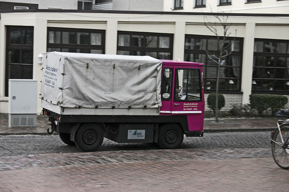Gerade rauscht eine violette E-Karre vom Gepäckdienst »Hundorf & Tammen« vorbei. Gegen einen geringen Aufpreis bringen die Mitarbeiter des Gepäckdienstes den Gästen ihr Gepäck direkt vom Bahnhof bis zur Wohnungstür.