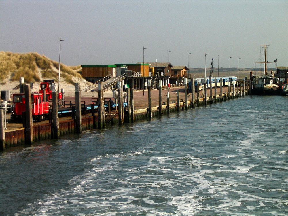 Noch ein weiterer Blick zurück zum Westanleger, diesmal sind auch Lok und Flachwagen mit im Bild.
