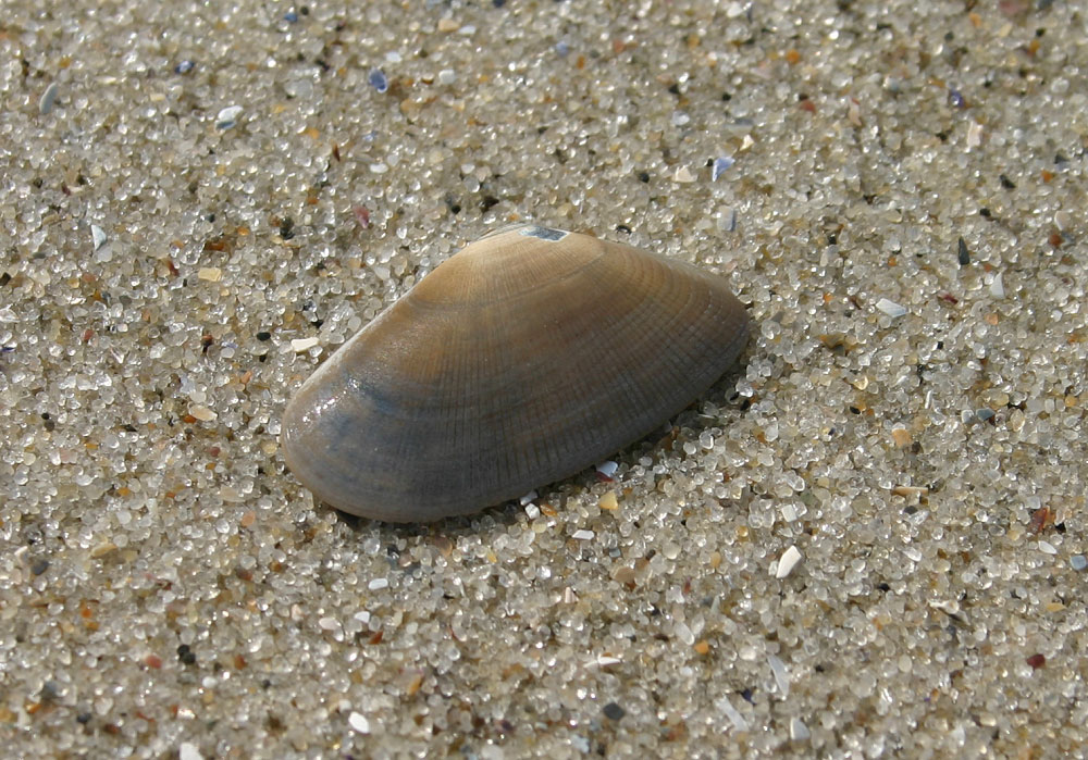 Wegen seines typisch gezackten Randes wird diese Muschel als »Sägezähnchen« bezeichnet. Ihr lateinischer Name lautet Donax vittatus.