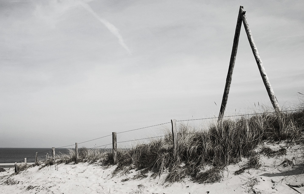 An der Überwegung »Neudeich« gibt es sogar zwei »A-Masten«. Neben dem Mast mit Wegweiser oben auf den Dünen gibt es weiter vorn noch diesen.