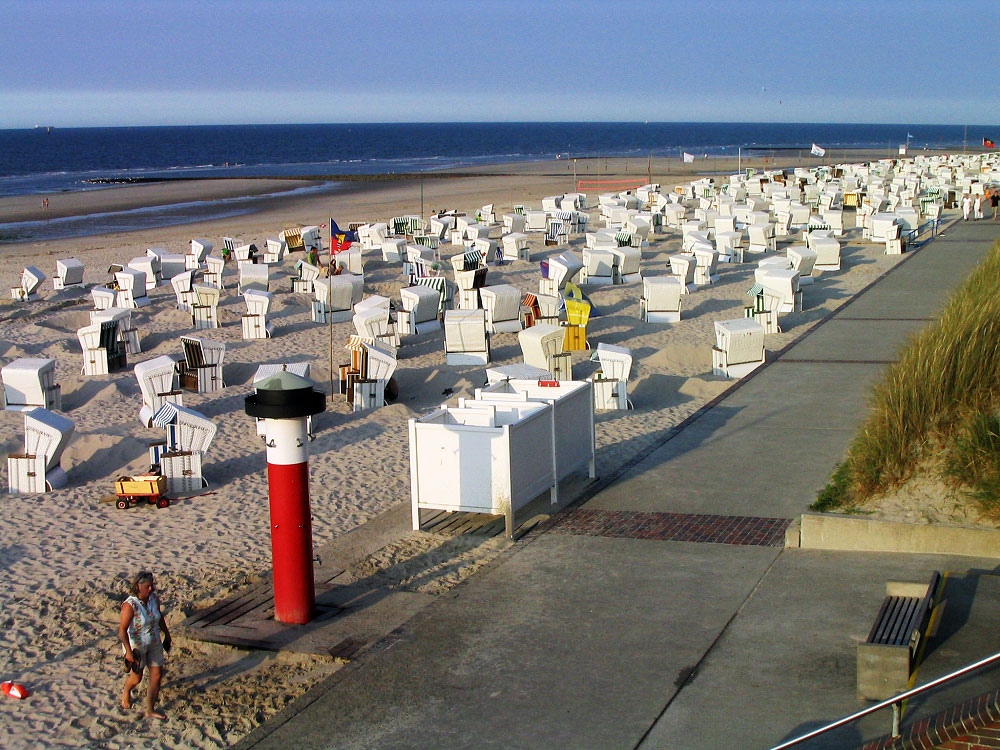 Das »Mittelfeld« erstreckt sich von der Uhr bis zur »Westingstraße«. Es handelt sich hierbei um einen relativ beliebten Strandabschnitt, demzufolge ist es im Sommer normalerweise auch als erstes ausgebucht. Jetzt am Abend ist natürlich nicht allzuviel los.