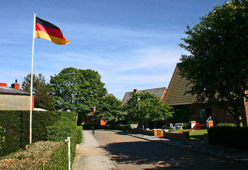 Die deutsche Flagge weht im Dorfgroden. Vielleicht bringt dies ja ein wenig Glück für das am Einstellungstag stattfindende WM-Halbfinale gegen Spanien.