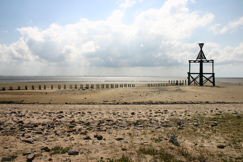 Die Stundenglasbake am Ostende von Wangerooge, die sogenannte »Ostbake« ist auf dieser Aufnahme zu sehen.