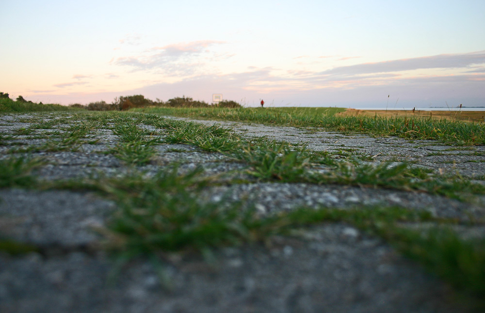 In fünf Zentimeter Höhe sieht man erstmal, wie bewachsen der Weg auf der Deichkrone des Dorfgrodendeiches doch ist.