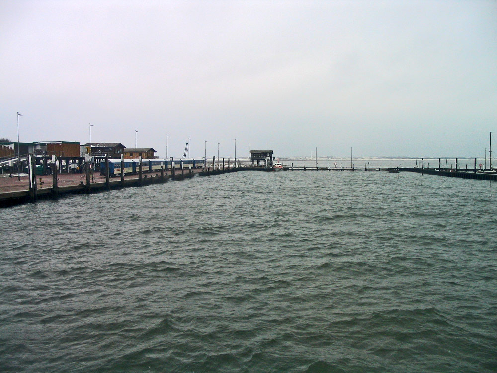 Ende Oktober 2003 hat es auf der Insel geschneit – so früh wie schon seit vielen Jahren nicht mehr. Zunächst kommen wir aber am Westanleger an, hier kann man noch nicht viel von der weißen Pracht erkennen.