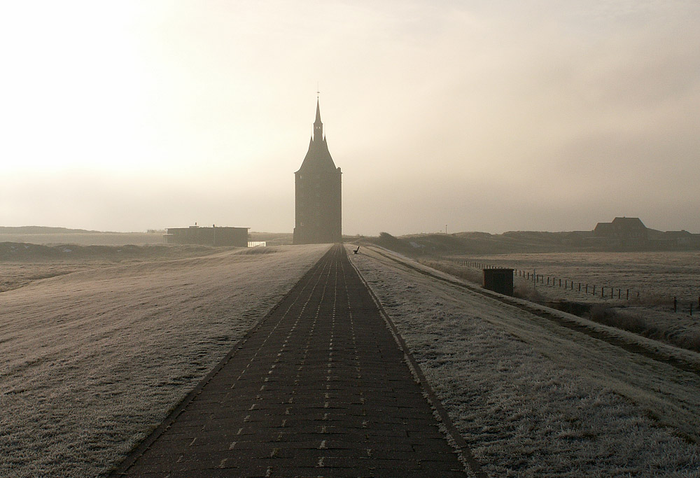 Jeder Grashalm ist wegen des gefrierenden Nebels mit einer dicken Rauhreifschicht überzogen. Doch langsam setzt sich die Sonne durch, es wird heller und heller.