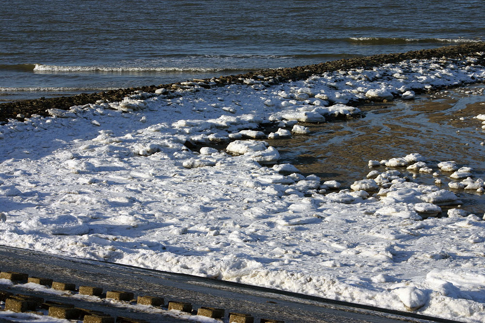 Im geschützten Bereich der Buhne »F« hat sich eine Menge Eis abgelagert.