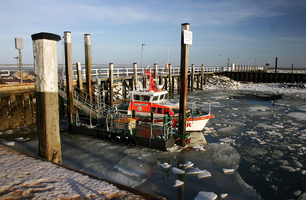 Das Seenotrettungsboot ›Wilma Sikorski‹ liegt an seinem gewohnten Platz am nördlichen Ende des Hafenbeckens.