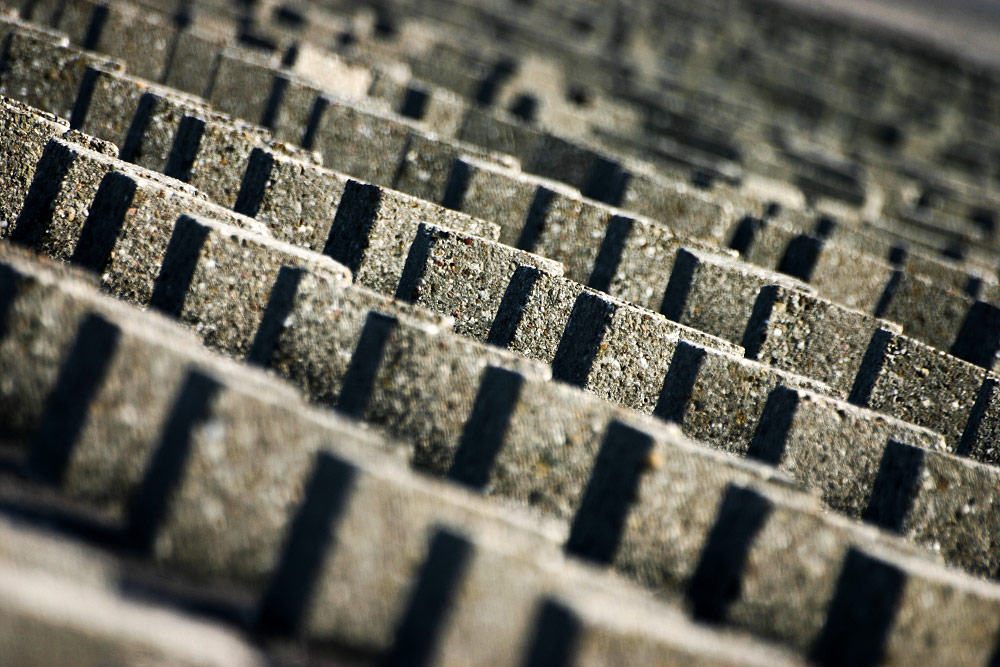Damit es die Wellen bei Sturmfluten nicht allzu einfach haben, das Deckwerk zu überwinden, befinden sich auf dessen Seeseite unzählige Betonsteine als Wellenbrecher.