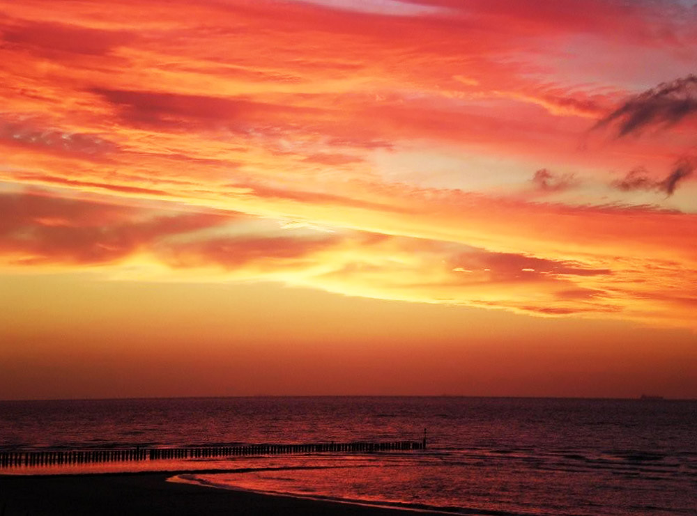 Der Himmel wirkt, als würde er brennen. Nach allgemein bekannten Bauernregeln ist Abendrot ein Vorzeichen für schönes Wetter (»Abendrot, gut Wetterbot«), während es nach einer Seemannsregel schlechtes Wetter vorhersagt (»Abendrot macht Seemann tot«). Urlauber wünschen sich selbstverständlich die erste, freundliche Variante.