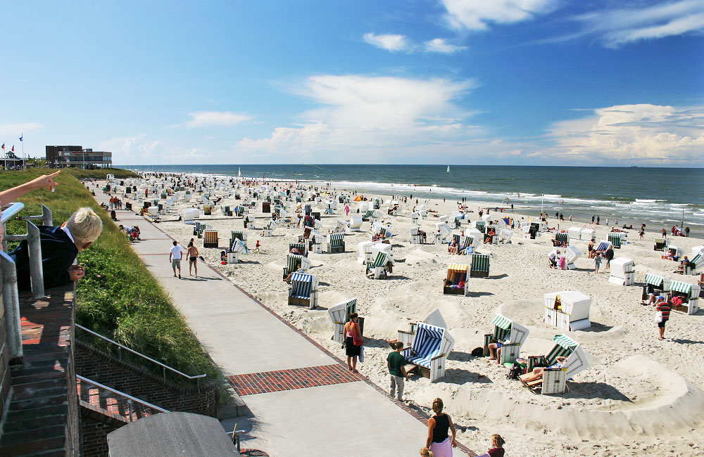 Hochsommerliche Stimmung am Hauptstrand. Das Foto ist auch schon einige Jährchen alt, sogar das Kurhaus steht noch.