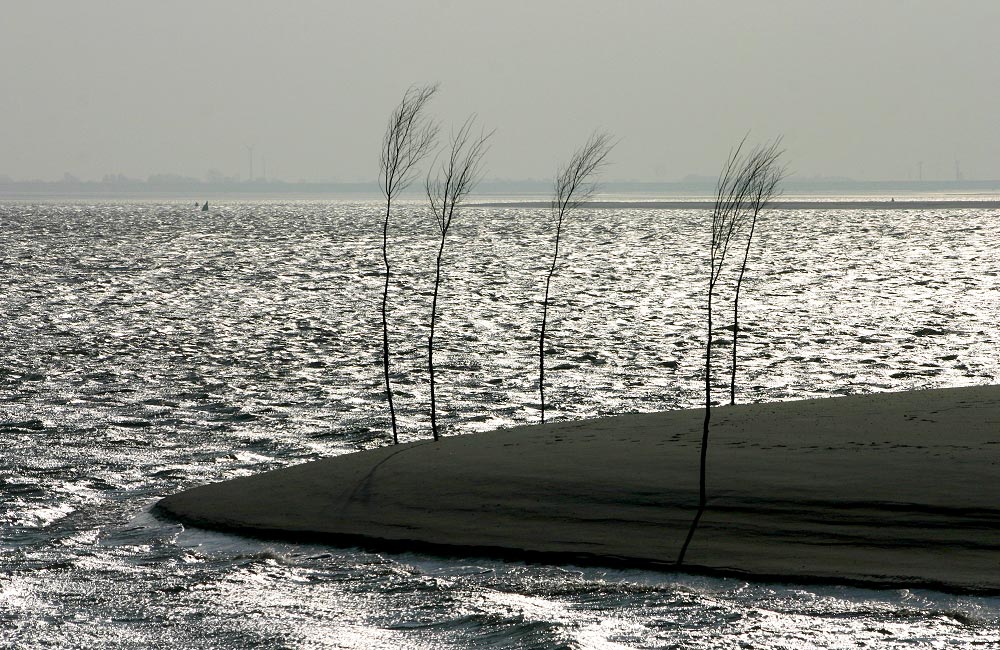 Die Sandbank am Ende von Buhne »W« nahe des Westanlegers wird durch einige Pricken markiert.