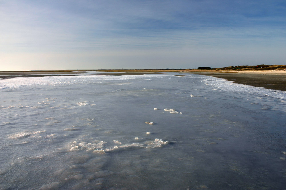 Diesmal blicken wir in Richtung Westen. Man kann genau sehen, bis wohin das Hochwasser vorgedrungen ist, an diesen Stellen befindet sich eine dünne Schicht aus salzigem Meereis.