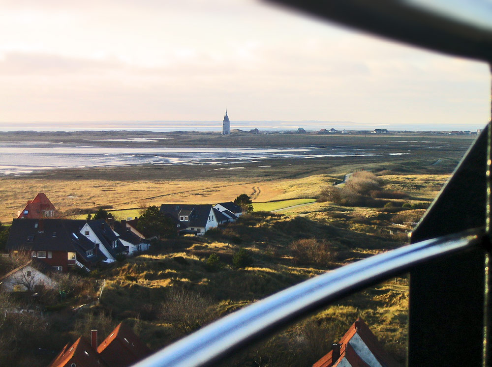 Ein letzter Blick vom Alten Leuchtturm in die Ferne, bevor es wieder hinab geht. Gut ist der Westturm zu erkennen, ebenso das »Bootstief«, an dessen Ende sich bis vor einigen Jahren der Yachthafen befand.