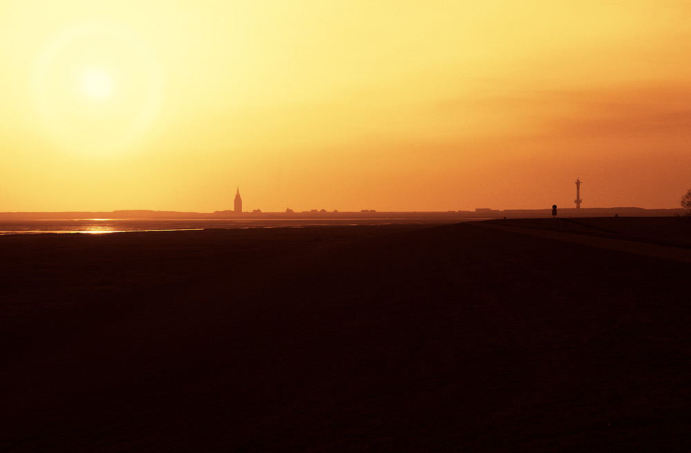 Links der Westturm, rechts der Neue Leuchtturm. Und dazwischen sieht man einige Dächer des Westdorfes, das größtenteils aus Schullandheimen besteht.