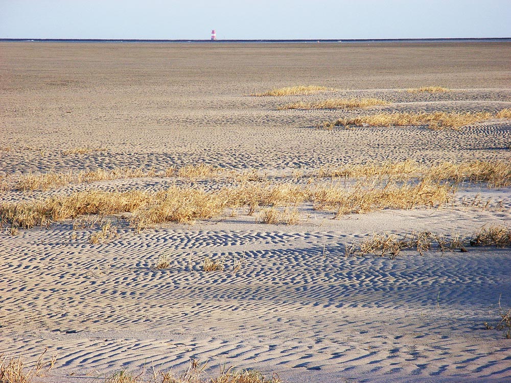 Im Ostteil der Insel ist der Strand mit Abstand am breitesten, erst am Horizont beginnt das Meer. Erste Primärdünen bilden sich hier, diese können aber auch schnell wieder verschwunden sein, wenn sie z. B. durch eine Sturmflut zerstört werden.