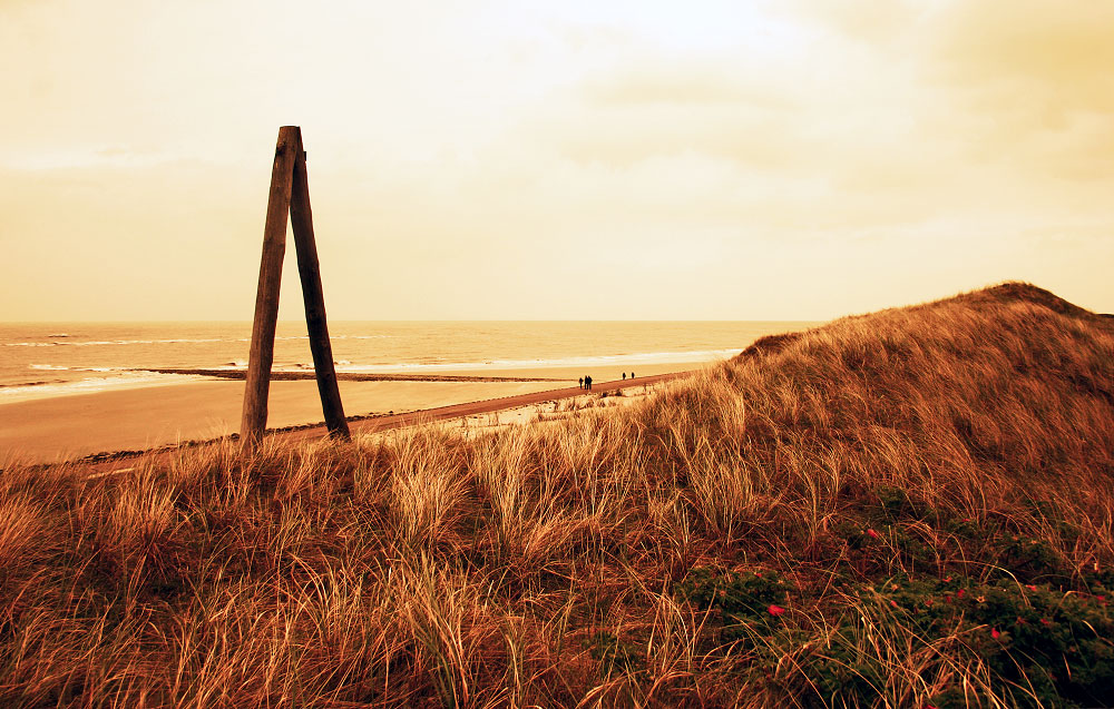 Die Nord- bzw. Nordwestdünen werden auf Wangerooge durch Deckwerke und Längswerke (in der Bildmitte zu sehen) geschützt, ohne welche wir an dieser Stelle wahrscheinlich mittlerweile am Strand oder im Meer stünden.