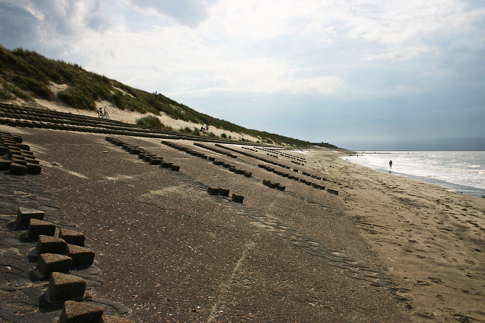 Mehr als die Hälfte der als Wellenbrecher dienenden Steine fehlt hier im unteren Bereich des Deckwerks, doch dieser Teil ist auch nicht so sehr den Wellen ausgesetzt wie der Bereich weiter westlich, so daß die fehlenden Wellenbrecher keine übertrieben große Gefahr darstellen.