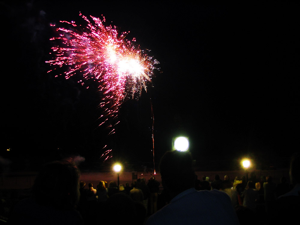 Einmal pro Sommer gibt es unten am Strand ein tolles Feuerwerk zu sehen, hier von der Puddingtreppe aus gesehen.