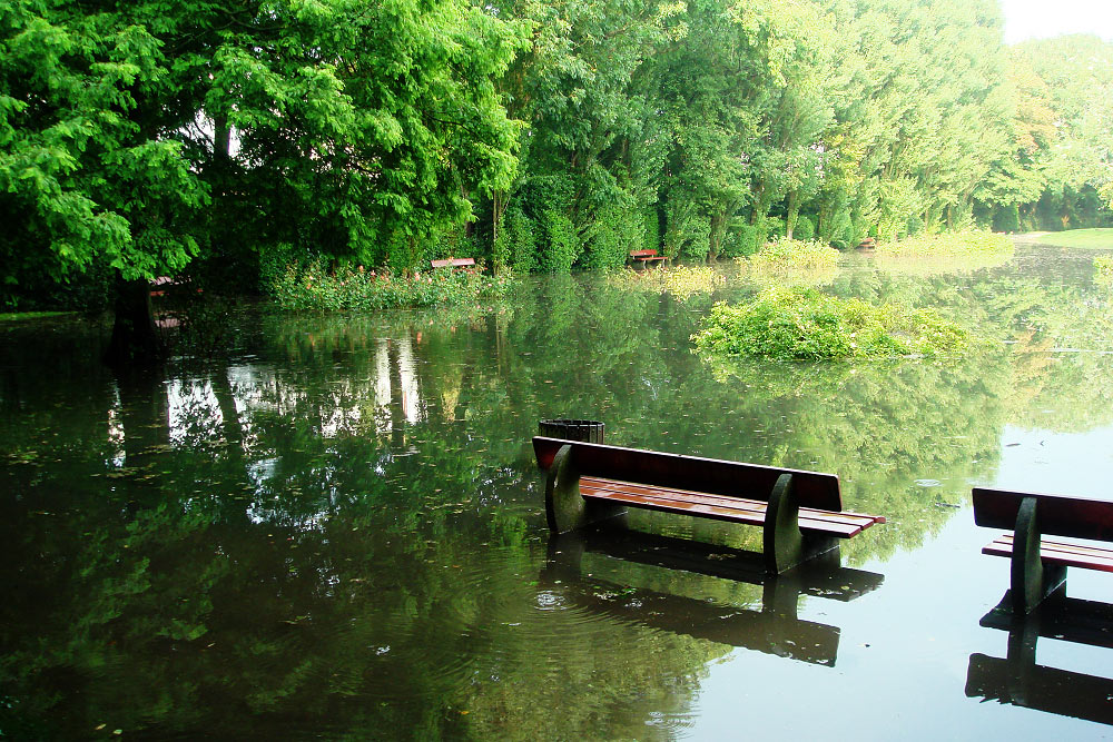 Ein weiteres Bild des überfluteten Rosengartens, der sehr tief gelegen ist und in dem sich daher nach dem Gewitterregen das Wasser der höher gelegenen Ortsteile sammelte.