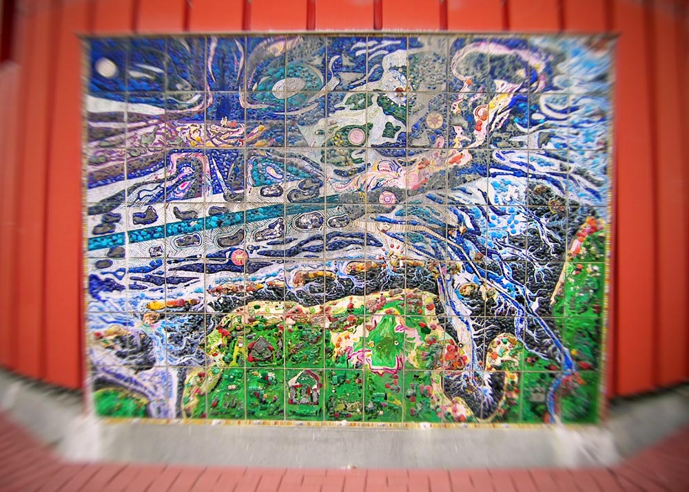 In Keramik-Einbrenntechnik wurde diese Tafel am Fuß des Neuen Leuchtturms gestaltet. Sie zeigt die Deutsche Bucht mit den Schiffahrtswegen, die Ostfriesische Halbinsel sowie die vorgelagerten Ostfriesischen Inseln.