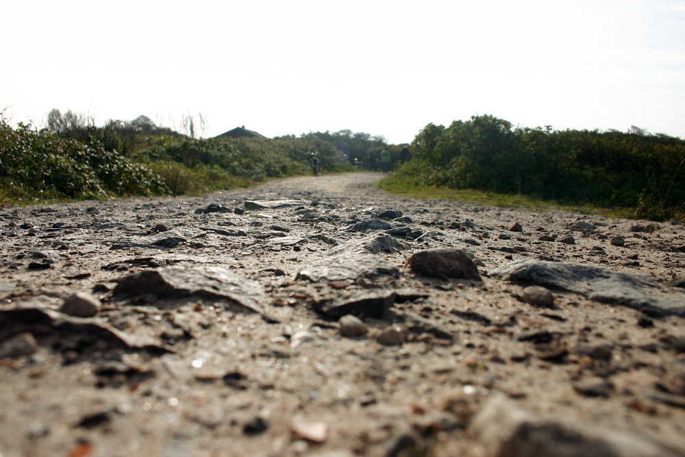 Ein teils sehr steiniger Weg führt über die Dünen im Osten hinüber. Wir befinden uns hier nahe »Café Neudeich« bzw. der Nationalparkstation Ost des »Mellumrats«.
