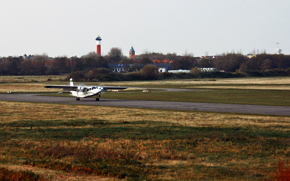 Die »Britten-Norman BN-2 Islander« der LFH mit der Registrierung »D-IEST« bei der Landung auf Wangerooge.