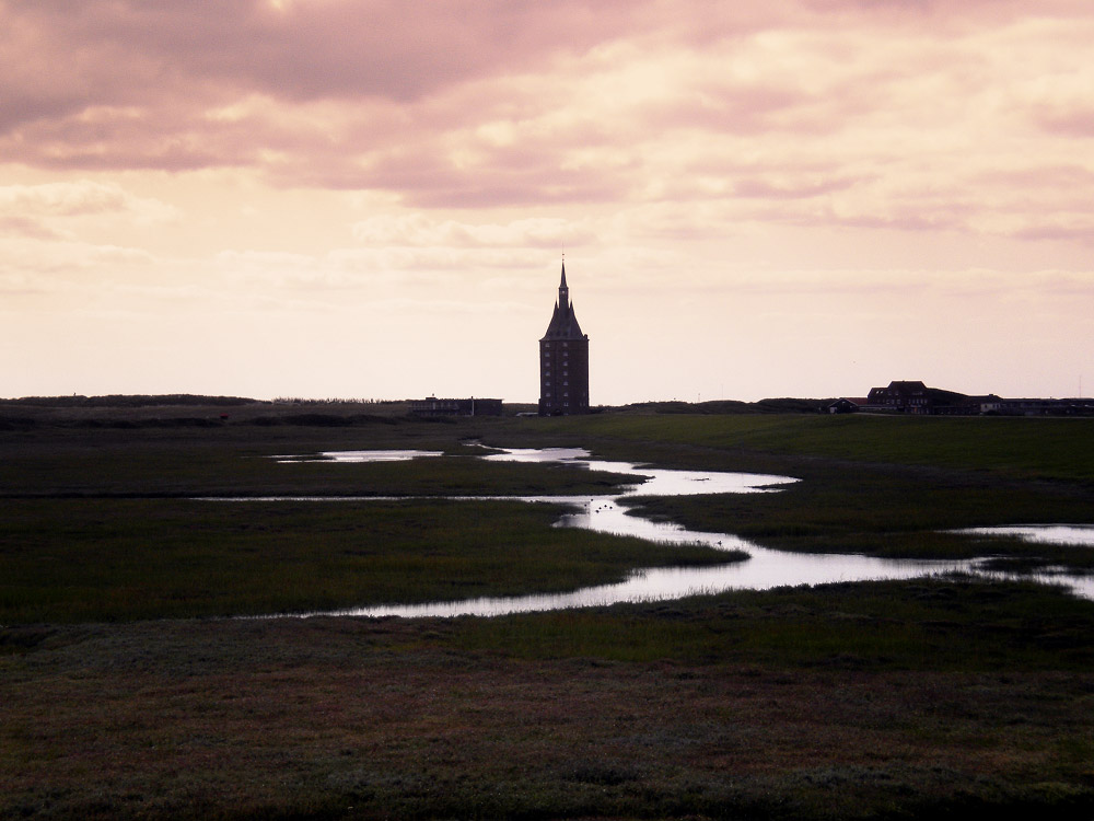 Blick vom Westgrodendeich auf die Lagune im Westaußengroden und den Westturm.